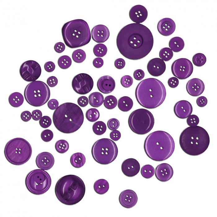 Dekorační knoflíky, mix velikostí a motivů. Balení obsahuje 40g knofílků v fialové barvě.