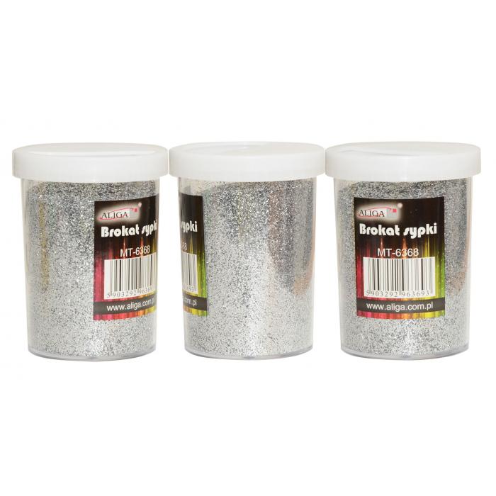 Sypký brokát v praktickém kelímku. Jeden kelímek obsahuje 100gramů stříbrného brokátu.