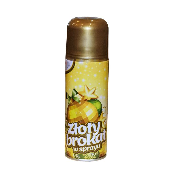 Zlatý sprej s brokátem určený k dekoraci np. na šišky, ořechy, větvičky a jiné přírodní materiály.