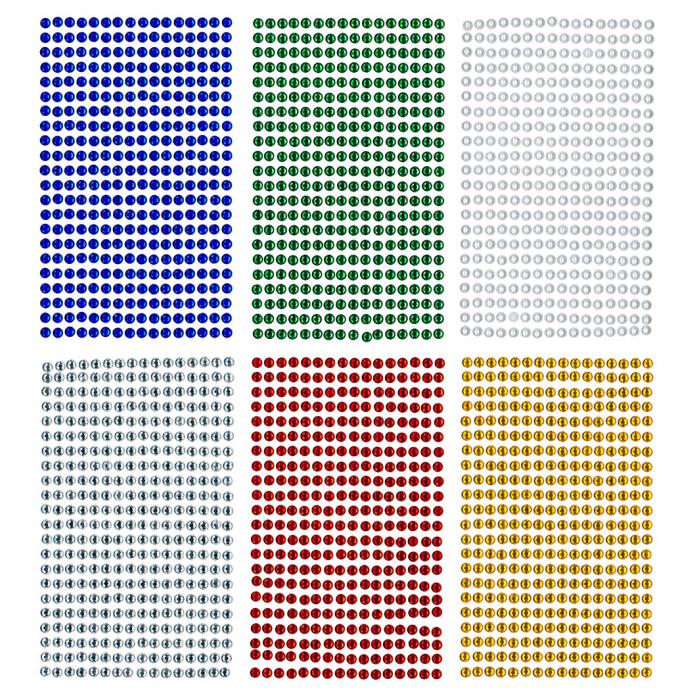 Nalepovací kamínky - plastové, 6 barevných provedení(modrá, zelená, zlatá, bílá, stříbrná, červená), jedno balení obsahuje 1 barvu.