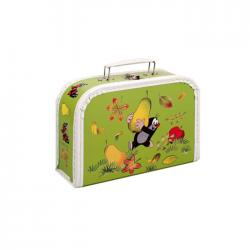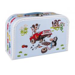 Šitý dětský kufřík od českého výrobce KAZETO je vyrobený z lepenky (vyrobena z recyklovaného papíru). Povrch je upraven vodou ředitelným lakem a barvami nebo potištěným papírem. Výrobek splňuje požadavky na bezpečnost hraček podle normy ČSN 71 část 1, 2 a 3.