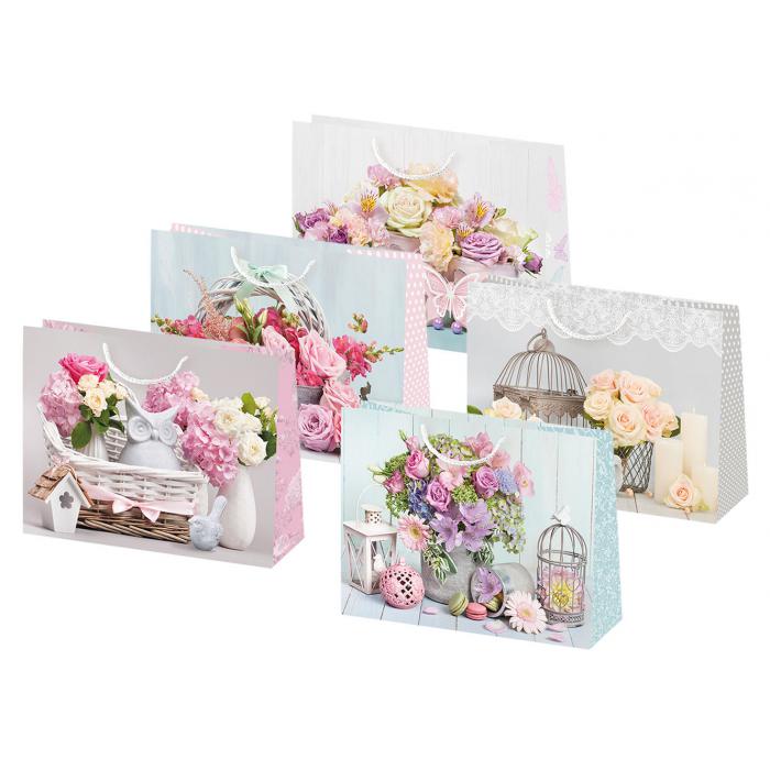 Dárková papírová taška s květinovým motivem, balení obsahuje mix 10ks.