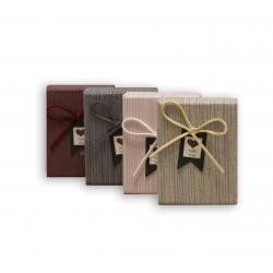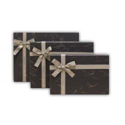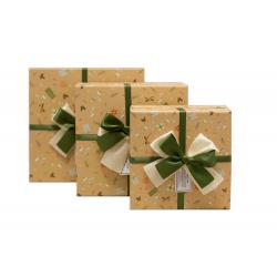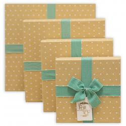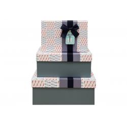 Dárkové krabice vzorované s víkem a se zelenou mašlí.