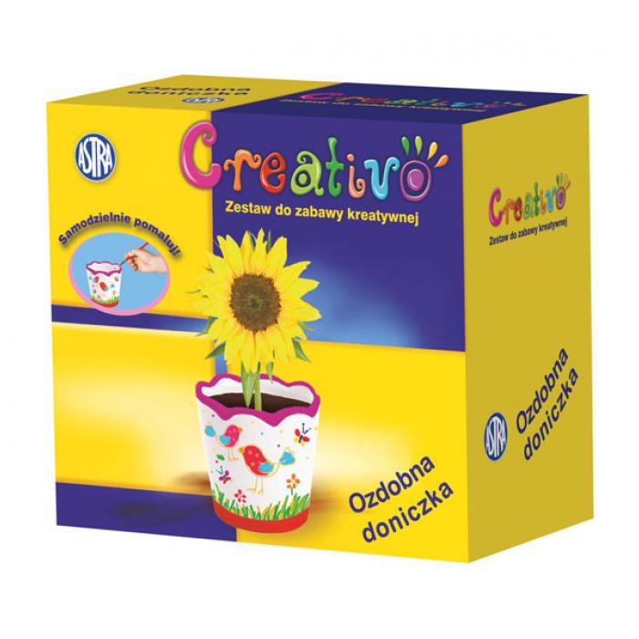 Creativo ozdobný květináč 1ks kat.č:327 112 006EAN:5900263280421Skladem:NEmin.odběr:1 balVelikost: Výrobce:Astra Obsahuje:1 květináč, 6 akrylových barev, štětec
