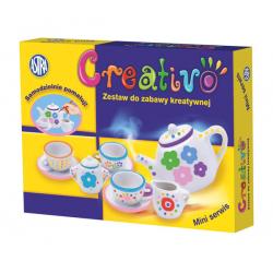 džbáneček, 3 šálky s podšálky, cukřenku, džbánek na mléko, 6 akrylových barev, štětec...
