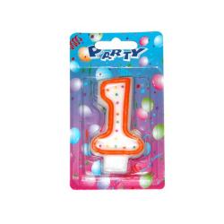 Dortová svíčka s červeným okrajem a s puntíky, číslo 1.
