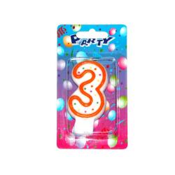 Dortová svíčka s červeným okrajem a s puntíky, číslo 3.