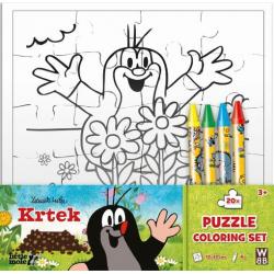 Puzzle Krtek k vybarvení + 4 voskovky.