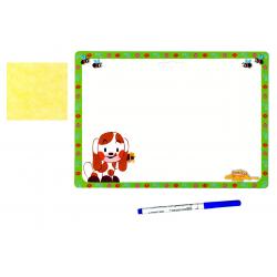 Oboustranná stíratelná tabulka včetně hadříku a popisovače.