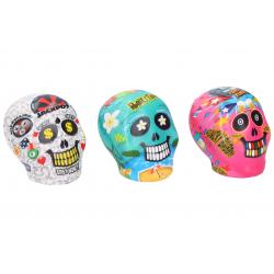 Antistresová mačkací lebka z pěnové hmoty. Mix několika motivů.