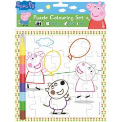 Puzzle Prasátko Pepina k vybarvení + skládací voskovy ( 8 barev).