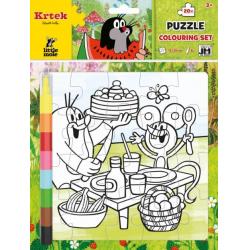 Puzzle Krtek k vybarvení + skládací voskovy ( 8 barev).