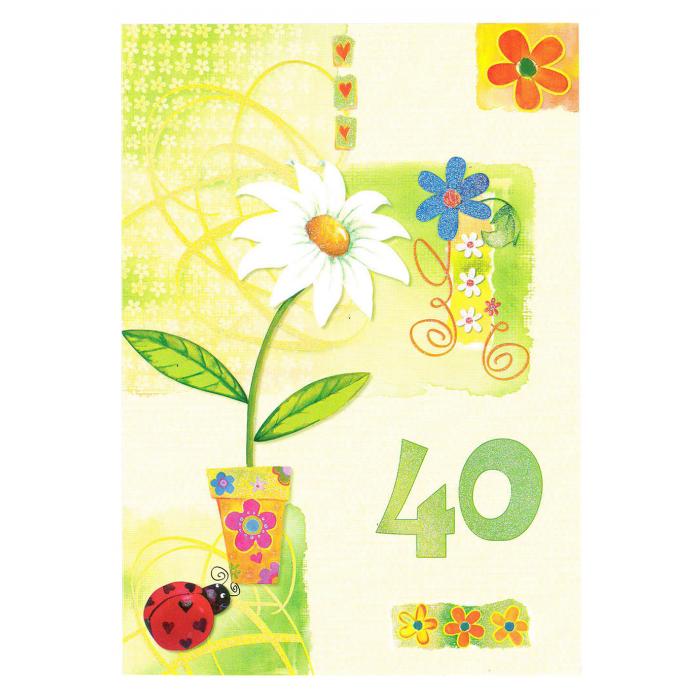 Přání výroční 40 kat.č:301022EAN:0Skladem:NEmin.odběr:1 ksVelikost:17 x 12 cm Výrobce:Dasao Přání výroční, s brokátem, s textem.
