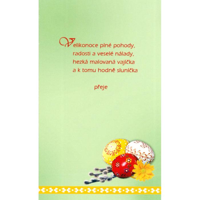 Velikonoční přání Mezuza 10-041 kat.č:10-041 ZEAN:0Skladem:NEmin.odběr:1 bal po 10 ksVelikost:95 x 155 mm Výrobce:Mezuza Velikonoční přání s textem uvnitř, 95 x 155 mm, balení obsahuje 10 ks.