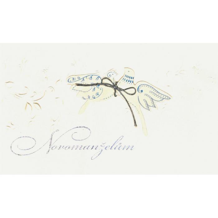 Svatební přání Mezuza 02-209 s textem kat.č:02-209 LEAN:0Skladem:NEmin.odběr:1 bal po 10 ksVelikost:19 x 11,5 cm Výrobce:Mezuza Svatební přání 19 x 11,5 cm, ražba, text uvnitř.