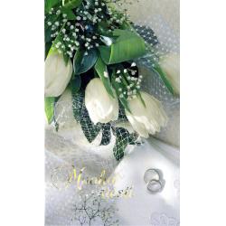 Svatební přání 19 x 11,5 cm, ražba, text uvnitř, kapsa na peníze.