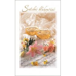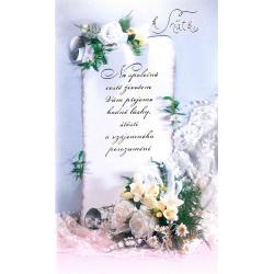 Svatební přání 19 x 11,5 cm, ražba, text uvnitř.