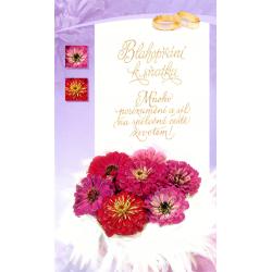 Svatební přání 19 x 11,5cm, ražba, text uvnitř.