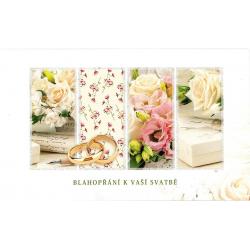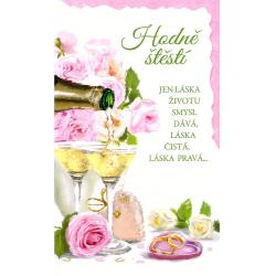 Svatební přání 19 x 11,5 cm, ražba, text uvnitř.