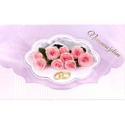 Svatební přání mix motivů 19 x 11,5 cm, ražba, slepotisk, text uvnitř.