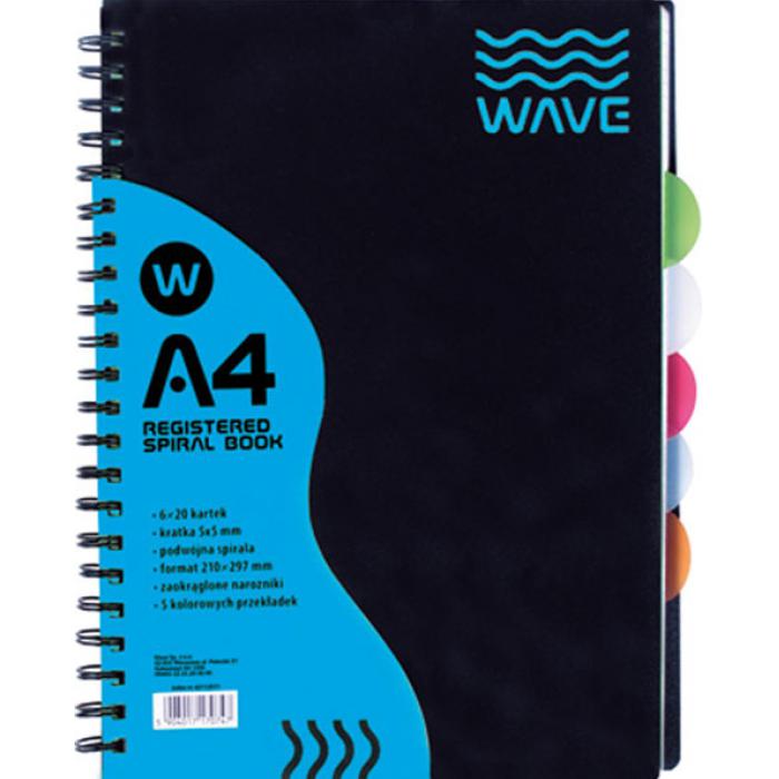 Poznámkový blok s boční spirálou A6, 120 listů, čtverečkovaný.