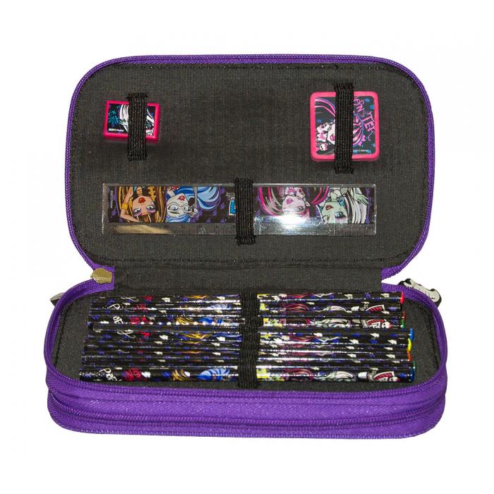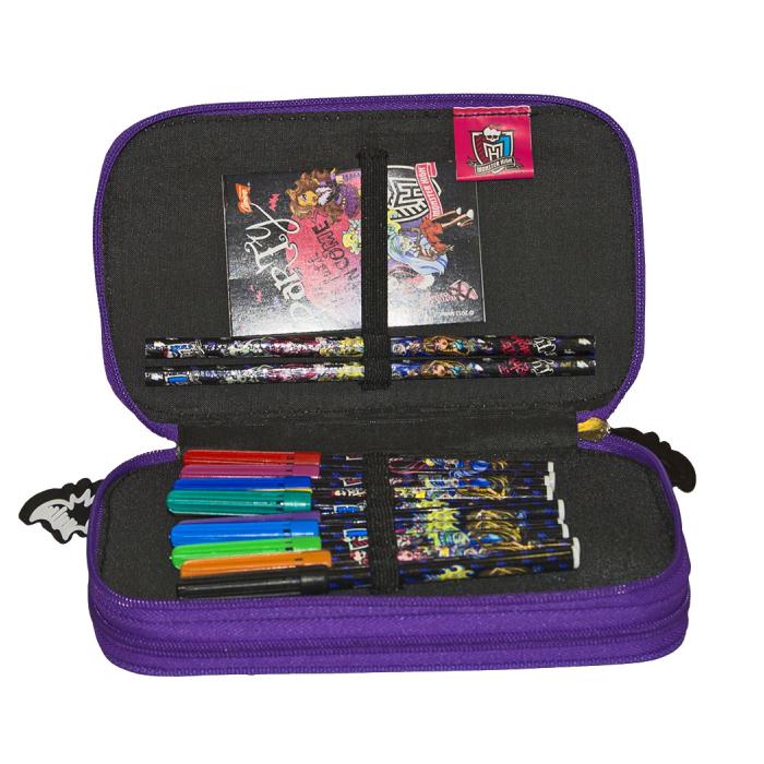 Penál Monster High 2 zipy vybavený + pouzdro zdarma