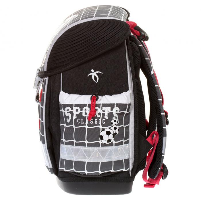 Lehký školní batoh (1000g) Supporter s mnoha funkčními prvky. Vyroben z vysoce kvalitního, pevného a nepromokavého materiálu. Zesílená konstrukce a pevné dno pro lepší stabilitu. Ergonomicky tvarovaná polstrovaná záda a ramenní popruhy. Gumová rukojeť, poutko pro zavěšení. Spolehlivý a snadno použitelný kovový zámek. Reflexní prvky na všech stranách pro větší bezpečnost a viditelnost.