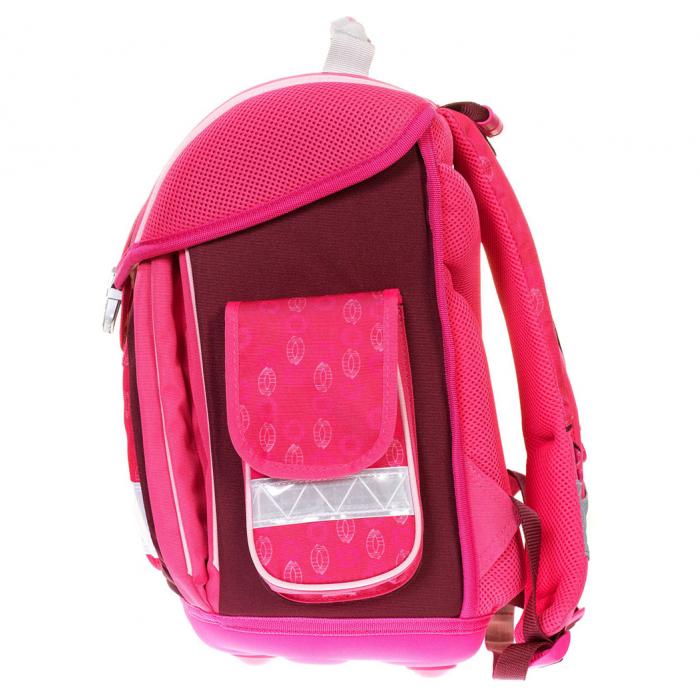 Lehký školní batoh (1100g) Lady Olga s mnoha funkčními prvky. Vyroben z vysoce kvalitního, pevného a nepromokavého materiálu. Zesílená konstrukce a pevné dno pro lepší stabilitu. Ergonomicky tvarovaná polstrovaná záda a ramenní popruhy. Gumová rukojeť, poutko pro zavěšení. Spolehlivý a snadno použitelný kovový zámek. Reflexní prvky na všech stranách pro větší bezpečnost a viditelnost. Pevné dno pro lepší stabilitu.