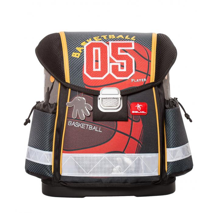 Lehký školní batoh (1000g) Basketball s mnoha funkčními prvky. Vyroben z vysoce kvalitního, pevného a nepromokavého materiálu. Zesílená konstrukce a pevné dno pro lepší stabilitu. Ergonomicky tvarovaná polstrovaná záda a ramenní popruhy. Gumová rukojeť, poutko pro zavěšení. Spolehlivý a snadno použitelný kovový zámek. Reflexní prvky na všech stranách pro větší bezpečnost a viditelnost.