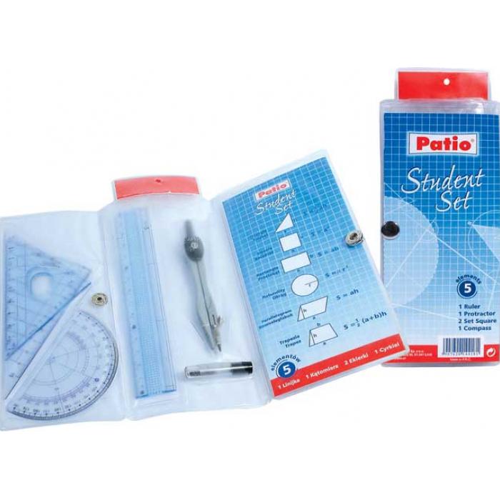 Rýsovací sada s kružítkem 5ks 89170PTR kat.č:89170PTREAN:5907808889170Skladem:NEmin.odběr:1 bal. ksVelikost: Výrobce:Patio Sada rýsovací 5 ks. Sada obsahuje: kovové kružítko, náhradní tuhy, úhloměr, trojúhelník a pravítko 15 cm.