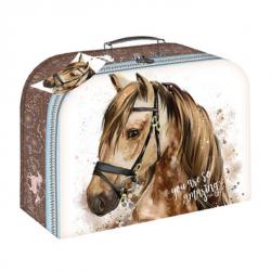 Šitý dětský kufřík od českého výrobce KAZETO je vyrobený z lepenky (vyrobena z recyklovaného papíru). Povrch je upraven vodou ředitelným lakem a barvami nebo potištěným papírem. Výrobek splňuje požadavky na bezpečnost hraček podle normy ČSN 71 část 1, 2 a 3.