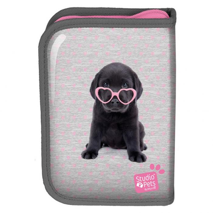 Vybavený školní penál z kolekce Studio Pets, 1zip, 2klopy.