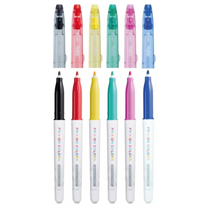 Gumovatelné fixy FriXion Colors 6ks kat.č:23611EAN:4902505423611Skladem:NEmin.odběr:1 bal po 6 balVelikost: Výrobce:Pilot Gumovatelné fixy FriXion.Barvu zneviditelníte zahřátím, které vznikne třením plastového zakončení fixu na papíře.
