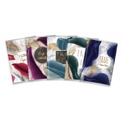 Sešit A5, 60 listů, linkovaný, laminovaná obálka, parciální lak s brokátem. Gramáž papíru 70g/m².