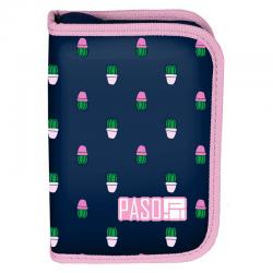 Školní penál s motivem kaktusu, 1zip, 2klopy, bez vybavení.