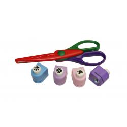 Sada dekorativních děrovaček + nůžky. Balení obsahuje 4ks děrovaček a nůžky Zigzag.