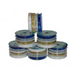Brokátová stuha jednolící. 10mm x 2m. Balení obsahuje 4 barvy (modrá, zlatá, stříbrná, bílá)...