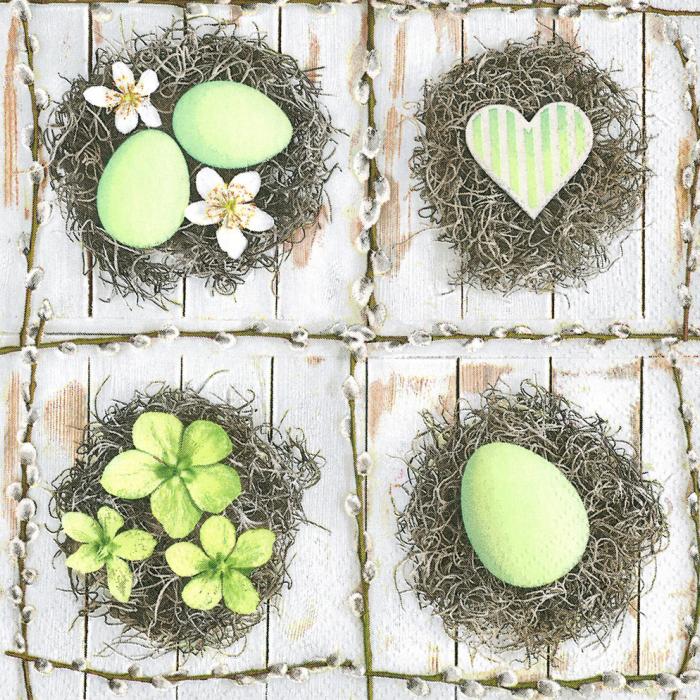 Velikonoční papírové ubrousky Pol-Mak Daisy z kolekce Pastel Green Easter Collage, 33 x 33 cm, třívrstvé.