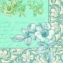 Papírové ubrousky Paw: Floral Carpet, zelené, 20 ubrousků, třívrstvé, 25x25cm.