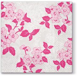 Papírové ubrousky Paw: Flower & Lance, 20 ubrousků, růžové, třívrstvé, 33x33cm.