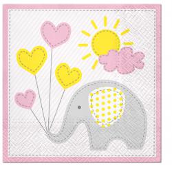 Papírové ubrousky Paw: Cute Elephant, 20 ubrousků, třívrstvé, 33x33cm.