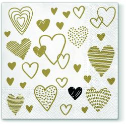 Papírové ubrousky Paw: Crazy Love, zlaté, 20 ubrousků, třívrstvé, 33x33cm.