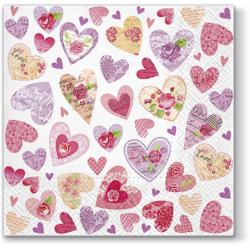 Papírové ubrousky Paw: Romantic Hearts, 20 ubrousků, třívrstvé, 33x33cm.