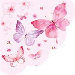 Papírové ubrousky Paw: Gentle Butterflies, 12 ubrousků, třívrstvé, ø32cm.