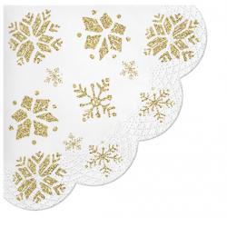 Vánoční papírové ubrousky Paw: Glittery Snowflakes - stříbrné, 12 ubrousků, třívrstvé, ø32cm....