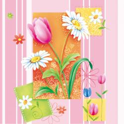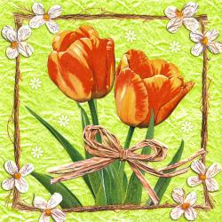 Velikonoční papírové ubrousky Daisy z kolekce Tulips & Needled Eggs, 33 x 33 cm, třívrstvé.