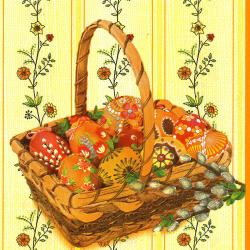Velikonoční papírové ubrousky Pol-Mak Daisy: Easter Eggs in Basket, 33 x 33 cm, třívrstvé.