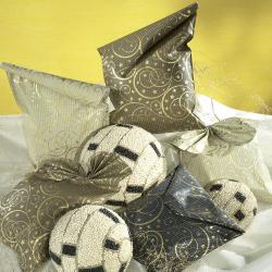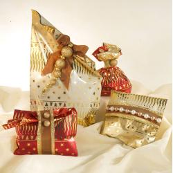 Mix vánočních sáčků Fantasy Gold v barvách: bílá, zlatá, červená, hnědá.