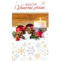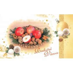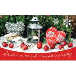 Vánoční přání s brokátem, text uvnitř.