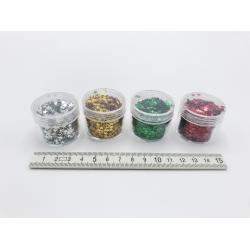 Metalické vánoční konfety v kelímku. Jeden kelímek obsahuje jednu barvu, celé balení obsahuje 12 kel...